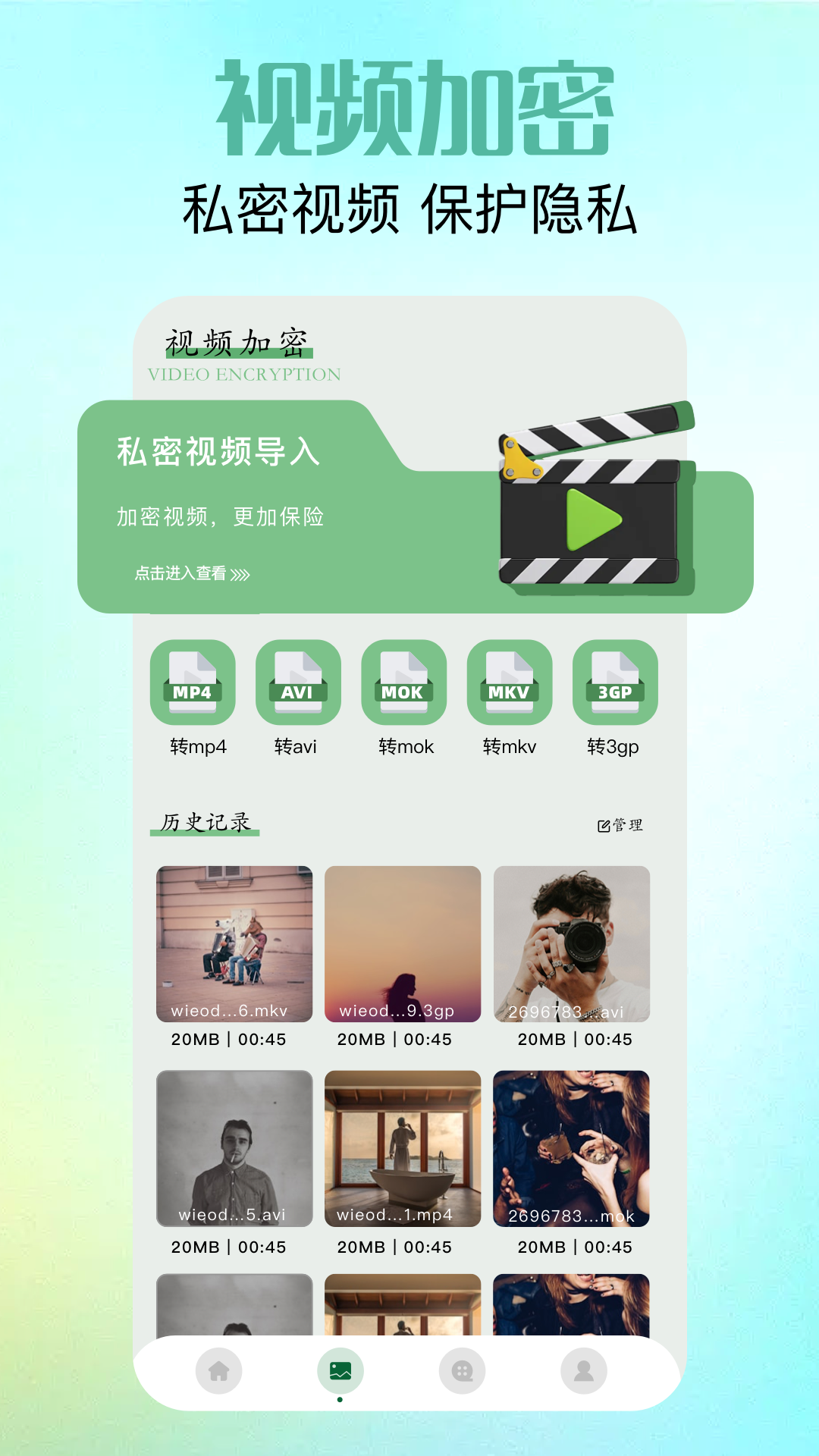 相册管理App是一款专为追求高效与隐私保护的用户设计的多媒体管理工具。其核心功能包括: 私密相册导入管理:用户可以轻松地将个人照片导入至私密相册中,享受专属的隐私保护空间,确保照片不被未经授权地访问。 私密视频导入管理:支持私密视频的导入与管理,同样提供高度的隐私保护,让用户安心存储和观看个人视频资料。 手机内部储存管理:提供全面的手机内部储存管理功能,帮助用户快速识别并清理冗余文件、缓存等,有效释放手机存储空间,提升设备性能。 视频格式转换:内置视频格式转换工具,支持多种主流视频格式的相互转换,满足用户在不同设备、平台上的播放需求,提升视频兼容性。 通过这款相册管理App,用户不仅能够高效地管理自己的照片和视频资料,还能享受到便捷的隐私保护和手机存储管理体验。